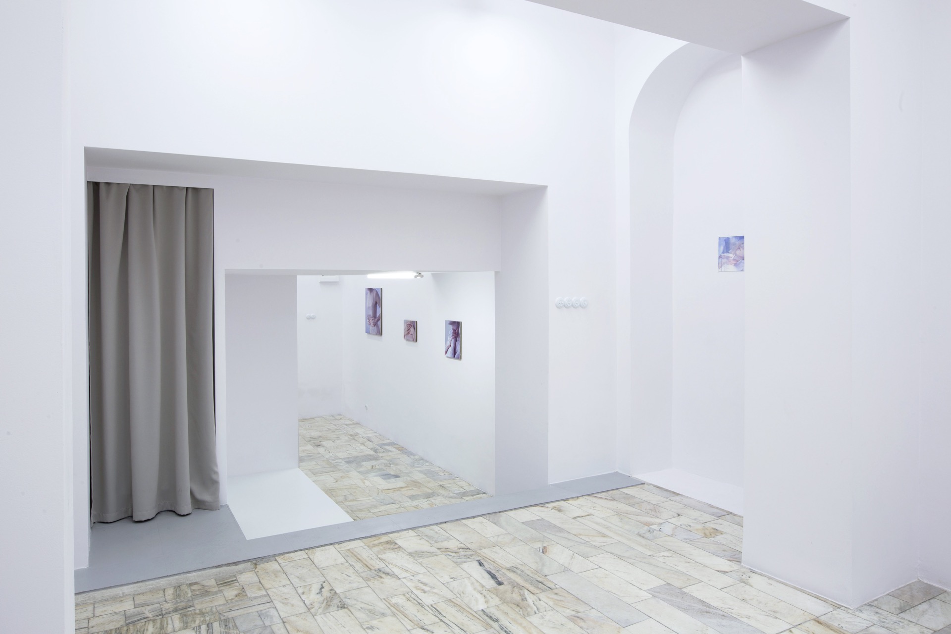 Ksenia Gryckiewicz wprowadza nas w intymny proces walki o głos – wydobywania na powierzchnię wypartych emocji i odzyskiwania podmiotowości w przestrzeni społecznej. Seria jej najnowszych obrazów dokumentuje pracę, którą autorka wykonuje od ponad roku nad wydobywanym przez siebie dźwiękiem. Poruszająca seria prac prowadzi nas od niemocy ku wyzwoleniu. Proste gesty i ćwiczenia z ciałem powoli dają przestrzeń ukrytej potencjalności, a przez zaciśniętą krtań przeciskają się pierwsze głoski.